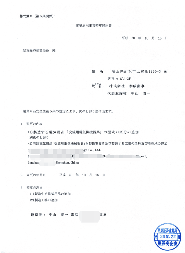 1, Notification of business,理解是日本进口商申明,内容包括制造商信息,产品信息以及签署日期